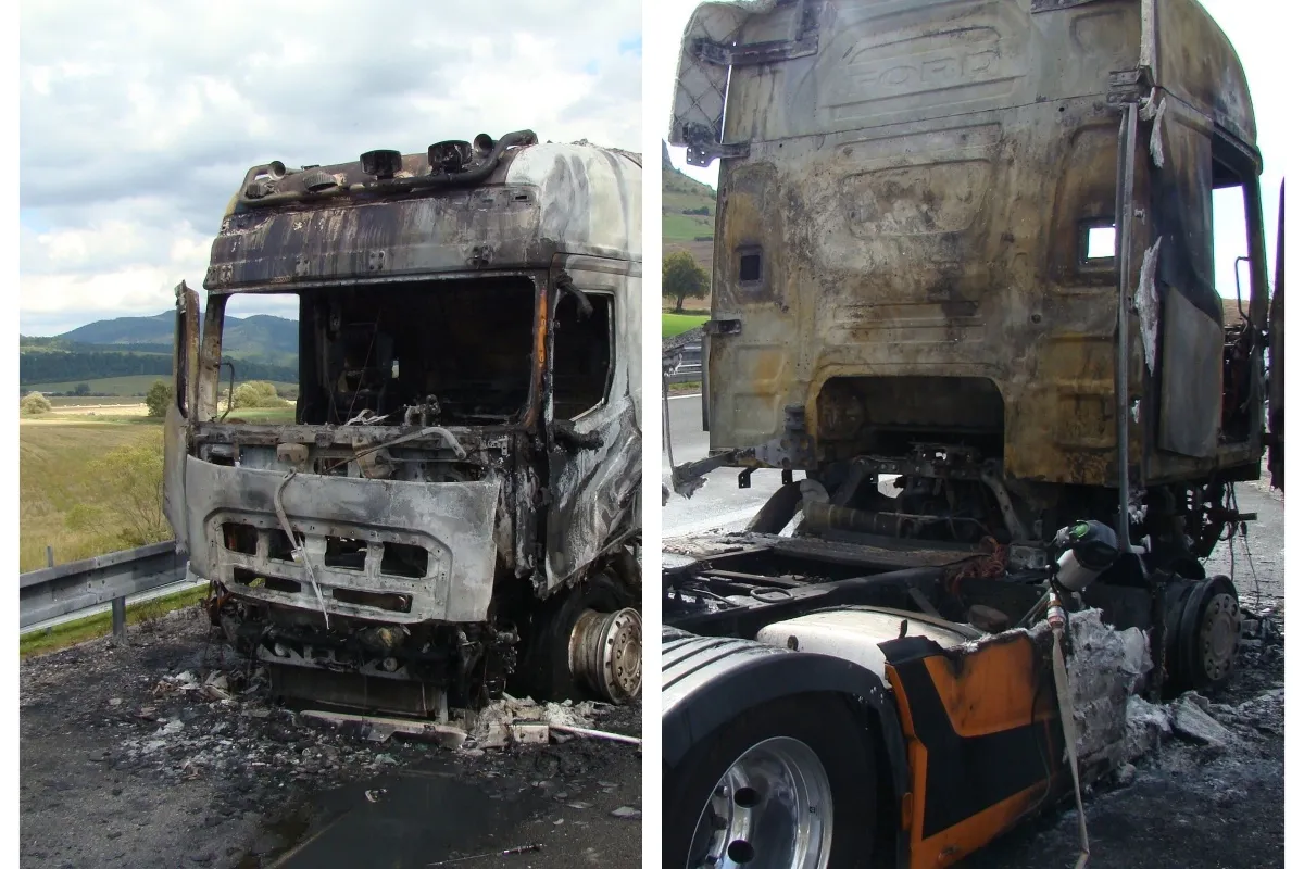 FOTO: Na diaľnici D1 v smere z Prešova horel ťahač. Vznikla škoda za desiatky tisíc eur