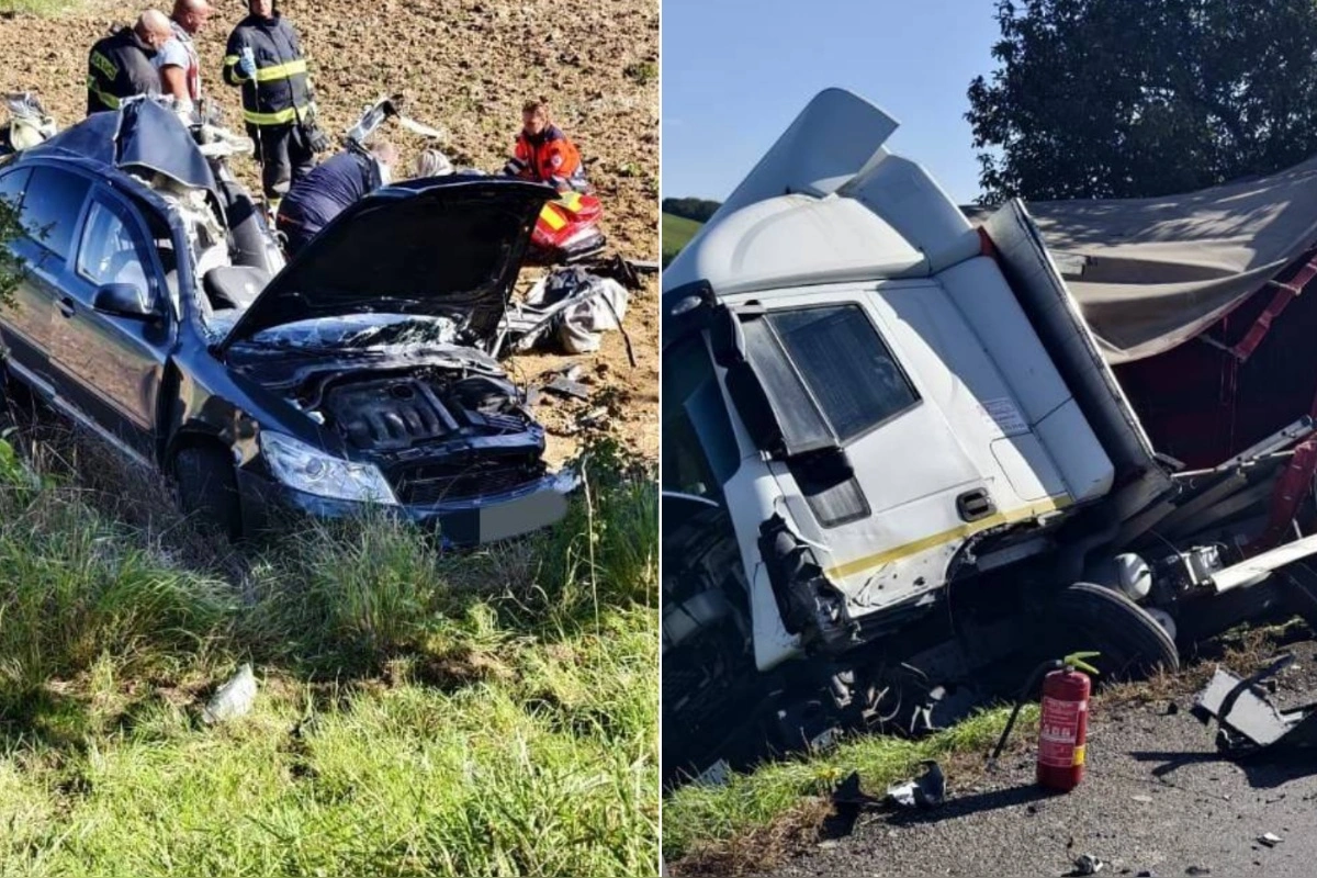 Vážna nehoda pri obci Merník neďaleko Vranova, osobné auto sa zrazilo s kamiónom, cestu následne uzatvorili