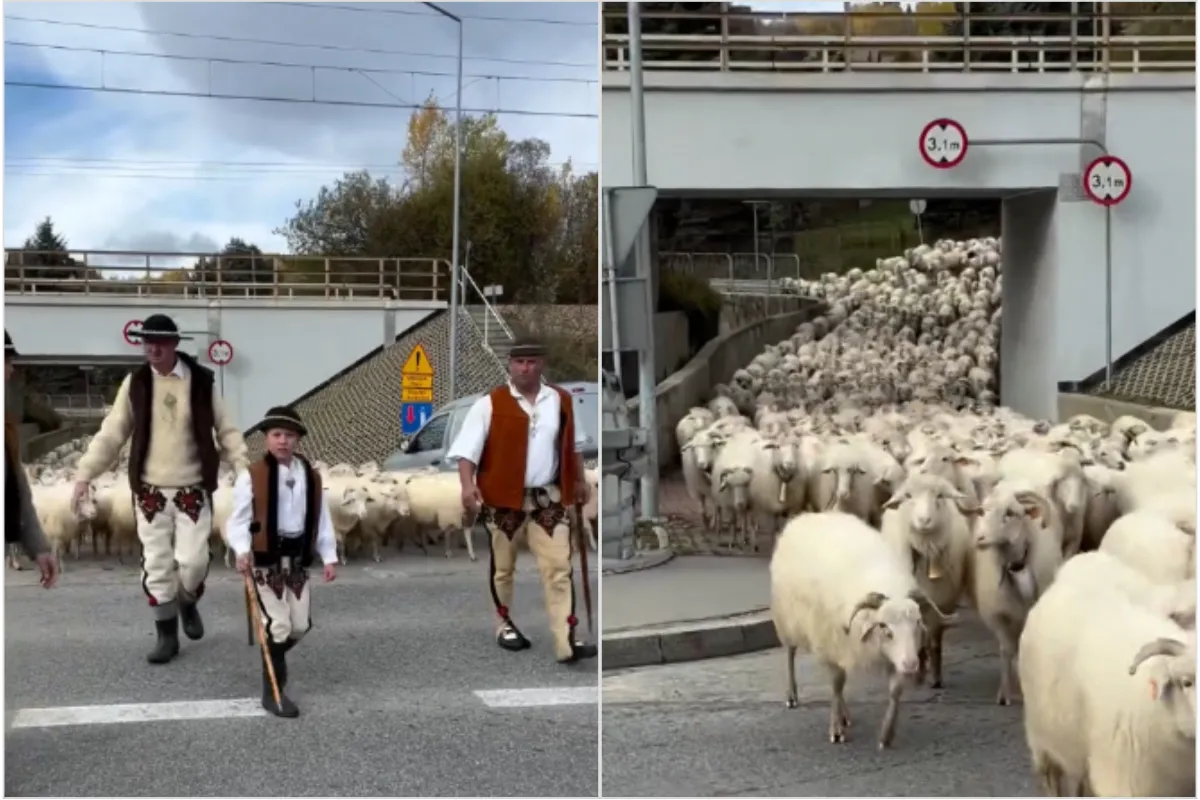 Unikátne zábery sa podarilo zachytiť fotografovi Bartłomiejovi Jureckému. Pastieri v tradičných krojoch so stádom vyšli z vedľajšej cesty na hlavnú a kvôli bezpečnosti ľudí aj zvierat dočasne zastavili premávku.
