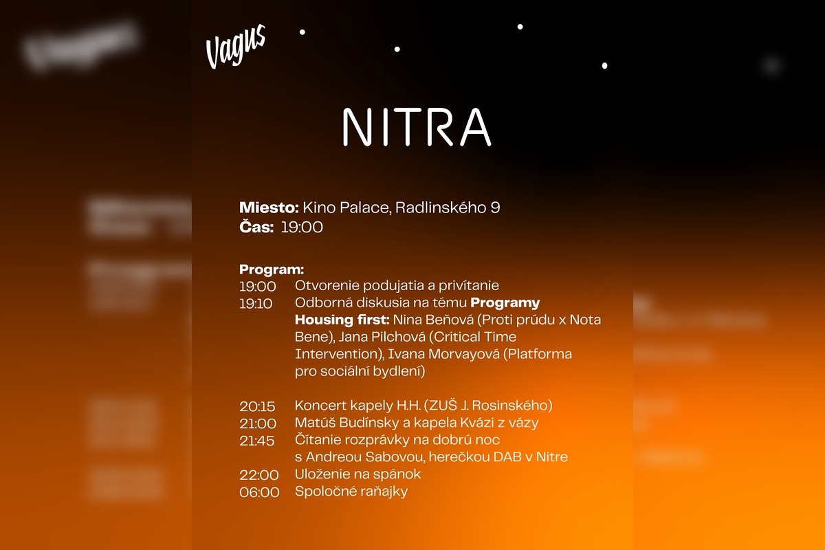 Jednu noc strávia bez domova, aby upozornili na tých, ktorí tak žijú každý deň. Vo štvrtok 27. novembra sa na Slovensku uskutoční celonárodné podujatie Noc vonku, ktorého cieľom je upriamiť pozornosť na narastajúcu chudobu a alarmujúcu situáciu ľudí bez domova. Účastníci si symbolicky vyskúšajú, aké je to spať pod holým nebom v mrazivej noci – podobne ako tisíce ľudí, ktorí to nerobia dobrovoľne.