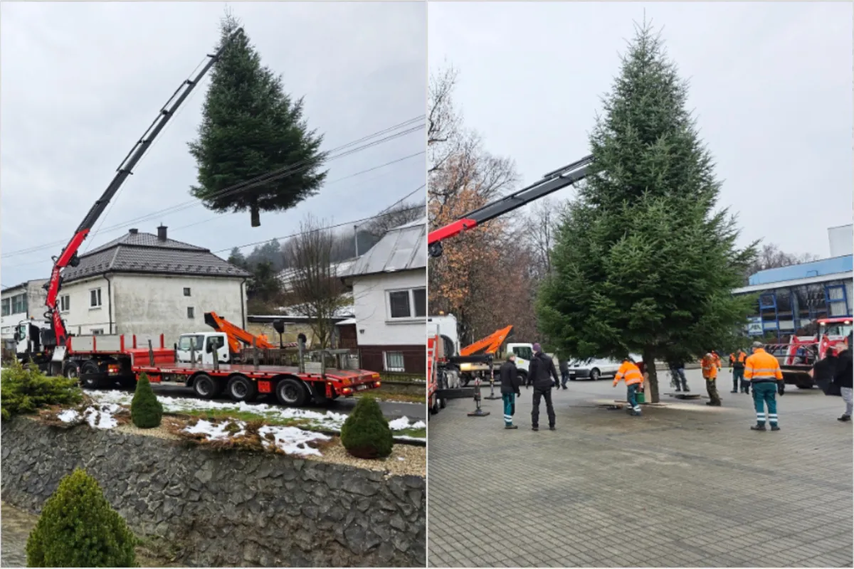 FOTO: Humenné má nový vianočný stromček. Jedľa splnila posledné želanie otca a potešila Humenčanov