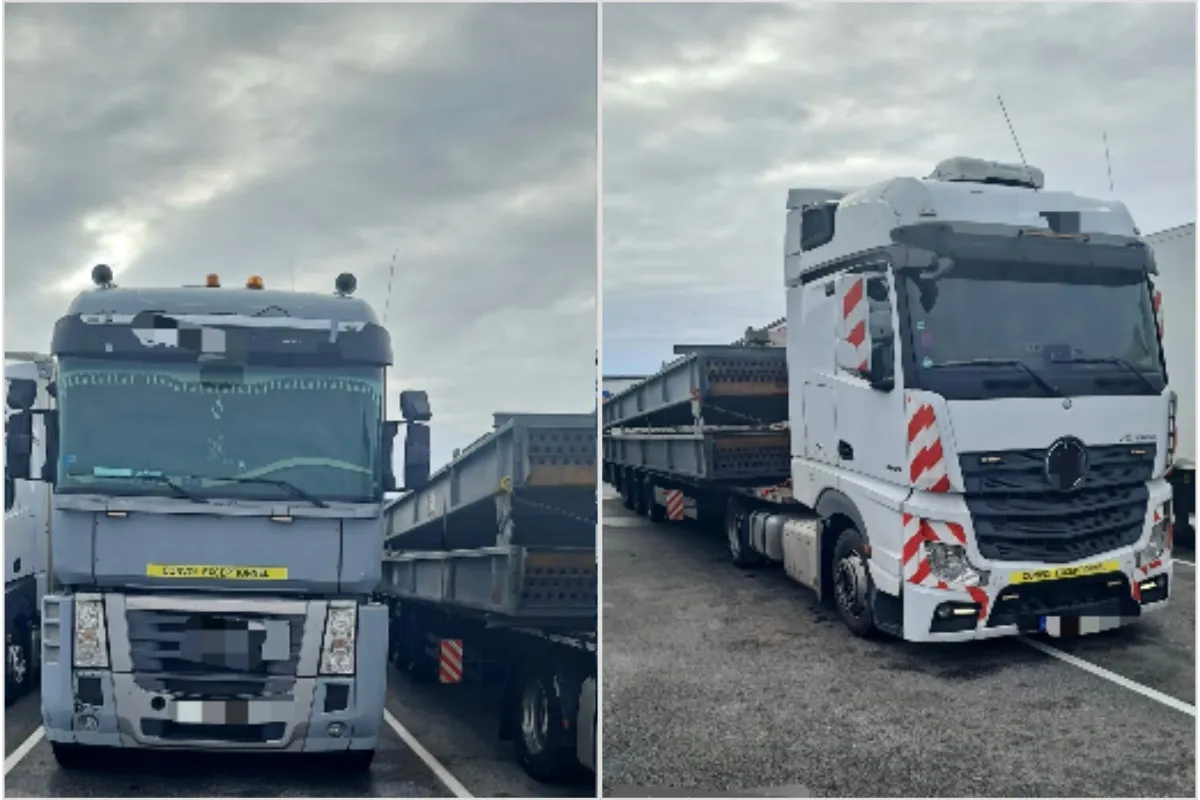 FOTO: Zahraniční vodiči sa po D1 snažili previezť nadrozmerný náklad bez povolení. Plány im prekazila prešovská polícia