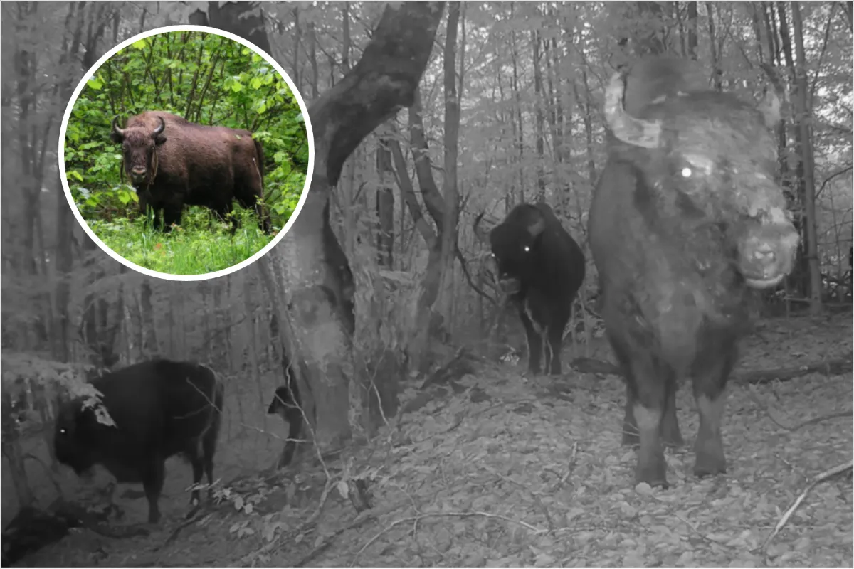 V Národnom parku Poloniny sa podarilo zaznamenať jeden z najvzácnejších pohľadov, aké môže naša divočina ponúknuť. Fotopasca WildLifeBlog Owl – Solar zachytila ešte za šera troch majestátnych samcov zubra hrivnatého (Bison bonasus), ako ticho kráčajú jesenným lesom.