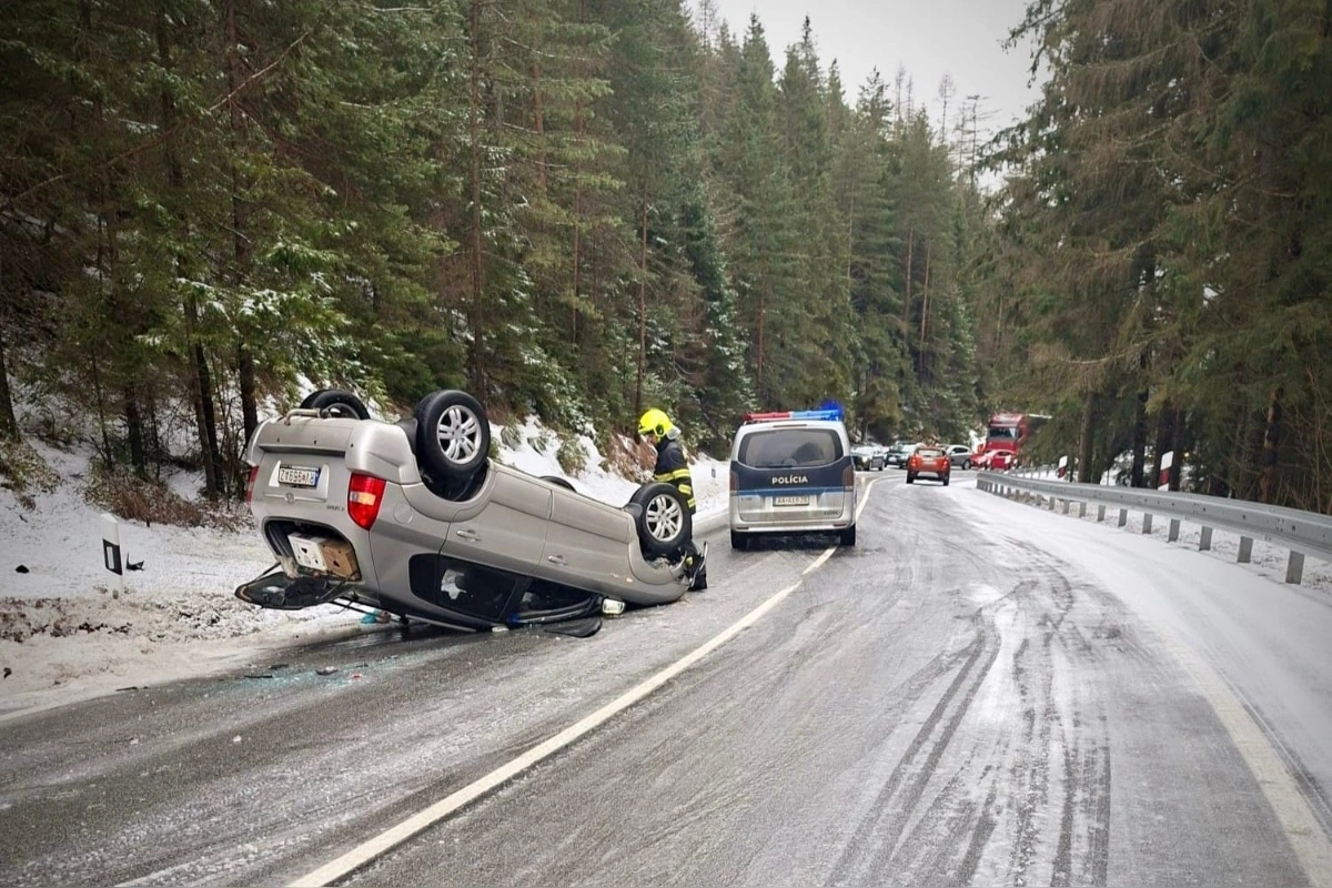 Na horskom priechode Vernár havarovalo auto, skončilo prevrátané na streche, úsek je neprejazdný