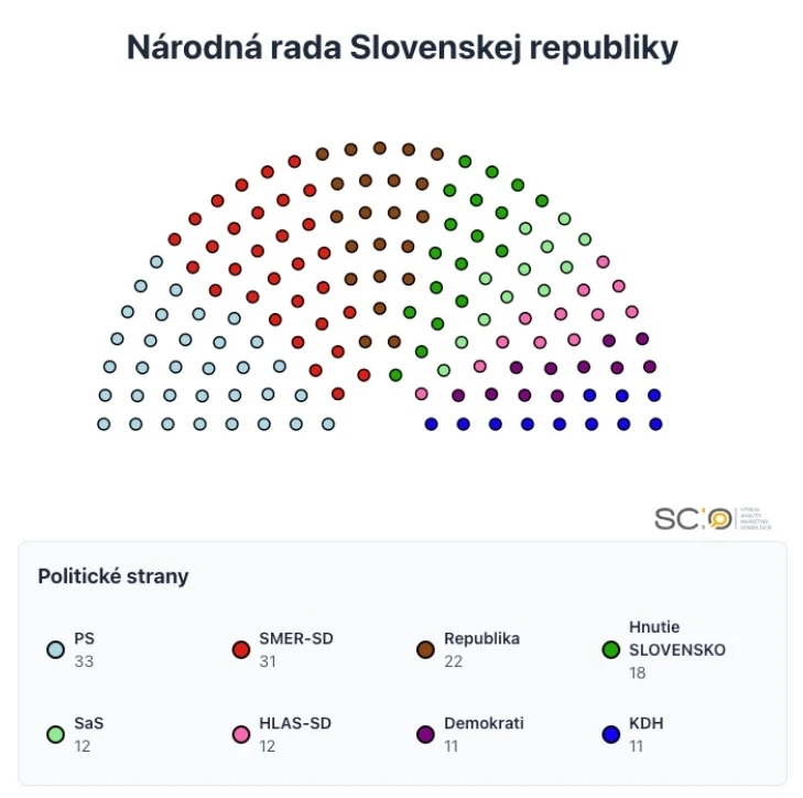 Ak by sa parlamentné voľby konali na konci februára 2026, víťazom by zostalo Progresívne Slovensko. Najnovší prieskum agentúry SCIO však ukazuje výrazný pokles jeho podpory a zároveň citeľné posilnenie hnutia SLOVENSKO.
