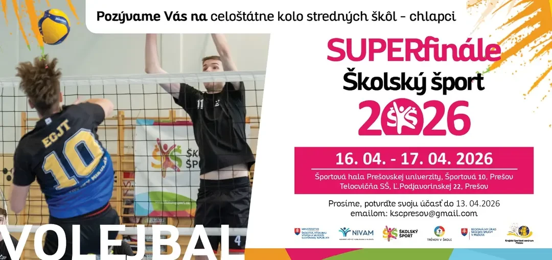 Prešov sa na dva dni stane centrom slovenského stredoškolského volejbalu. Vo štvrtok a piatok (16. a 17. apríla) sa v meste uskutoční celoštátne finále vo volejbale žiakov stredných škôl, kde sa predstaví osem najlepších tímov z celého Slovenska.