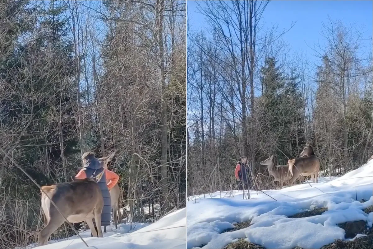 Nie je jasné, či jelenice prišli k žene alebo k nim ona prišla po tom, čo ich zbadala. Každopádne, ide o veľmi nebezpečnú situáciu a žena má obrovské šťastie, že odišla bez zranení.