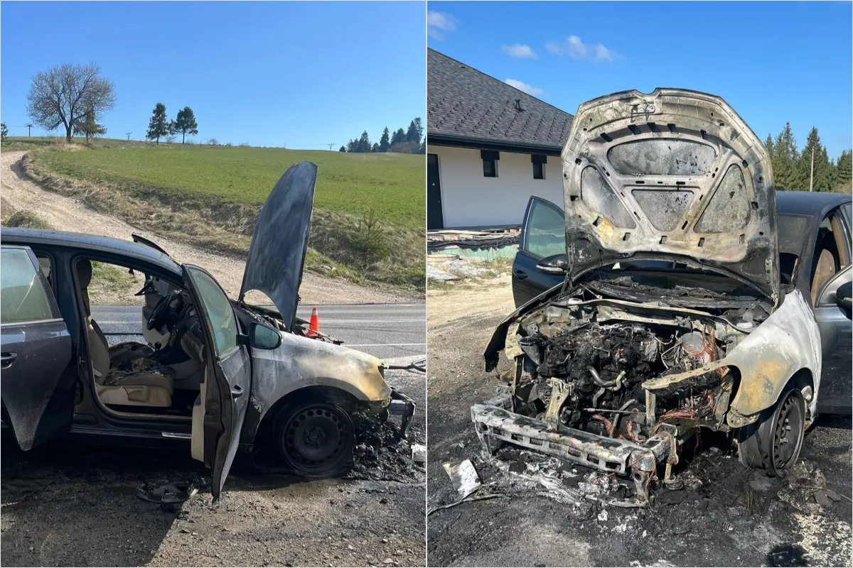 V okrese Stará Ľubovňa horelo auto, nachádzali sa v ňom 4 občania Poľska. Premávku riadi polícia