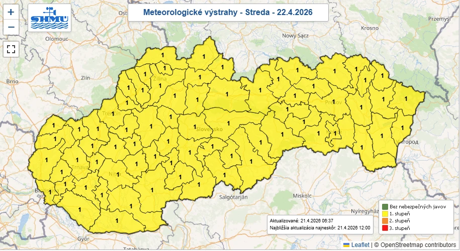 Po snežení však príde ešte väčší problém, a to mráz. Ten má zasiahnuť celé Slovensko v stredu nadránom. Výstraha prvého stupňa pred mrazom vo vegetačnom období platí od polnoci do 8.00.