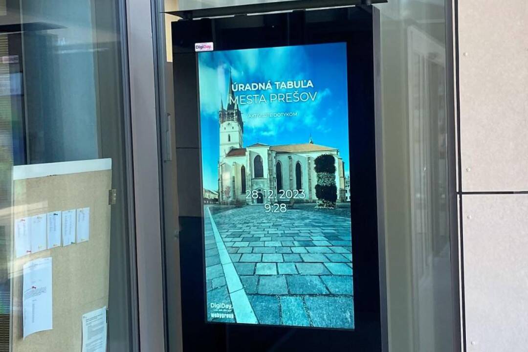 Pri budove Mestského úradu v Prešove sa nachádza nová digitálna úradná tabuľa s dotykovým displejom. Prešovčania ju nájdu hneď vedľa vchodu do budovy mestského úradu na Jarkovej ulici číslo 24.