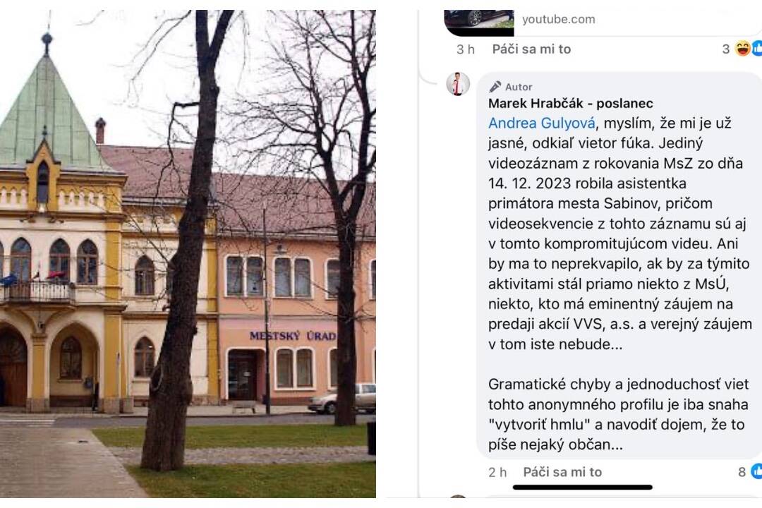 „Myslím, že mi je už jasné, odkiaľ vietor fúka. Jediný videozáznam z rokovania MsZ zo dňa 14. 12. 2023 robila asistentka primátora mesta Sabinov, pričom videosekvencie z tohto záznamu sú aj v tomto kompromitujúcom videu. Ani by ma to neprekvapilo, ak by za týmito aktivitami stál priamo niekto z MsÚ, niekto, kto má eminentný záujem na predaji akcií VVS, a.s. a verejný záujem v tom iste nebude. Gramatické chyby a jednoduchosť viet tohto anonymného profilu je iba snaha "vytvoriť hmlu" a navodiť dojem, že to píše nejaký občan,“ reagoval na komentár používateľky poslanec.