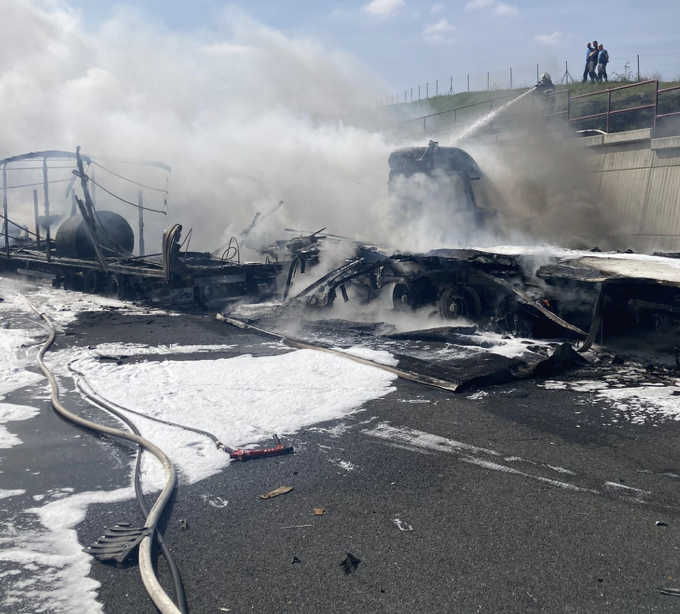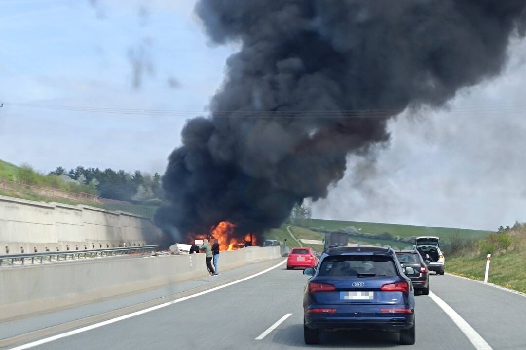 VIDEO: Na diaľnici v okrese Prešov sa zrazili dva kamióny, jeden začal horieť