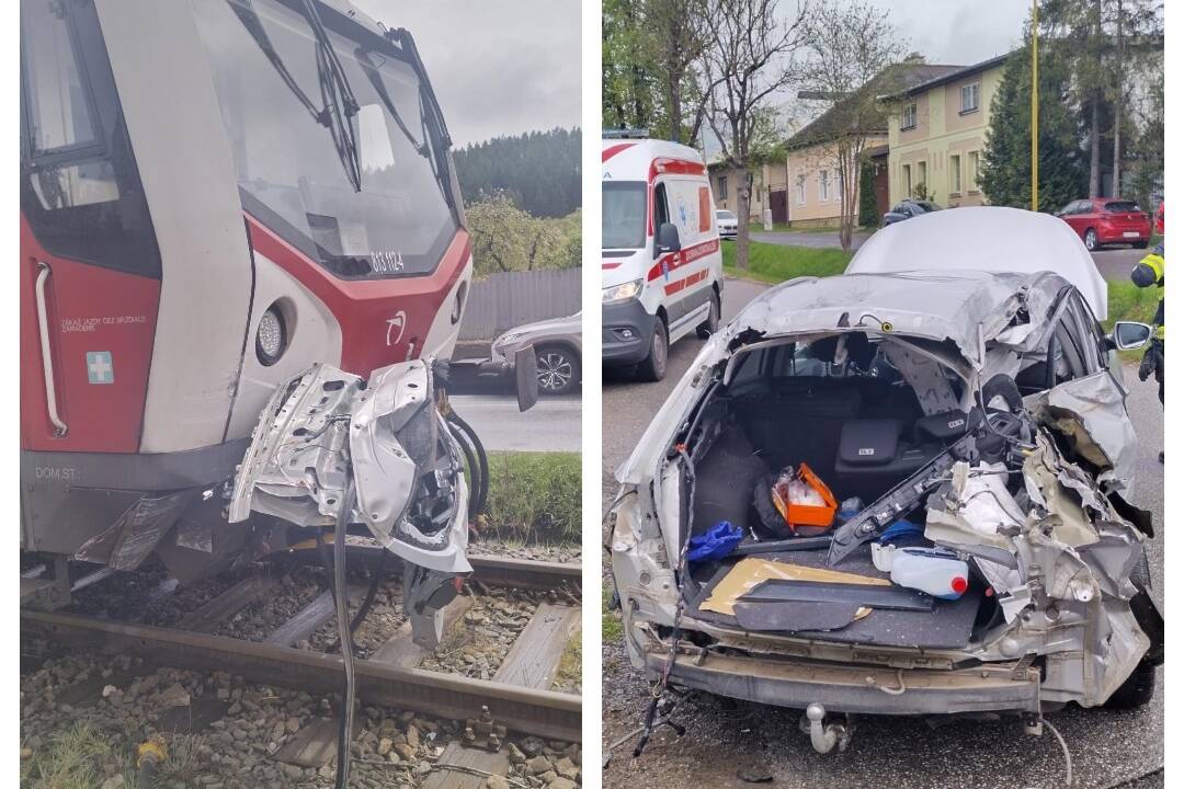 Vo Veľkej Lomnici došlo k zrážke osobného auta a vlaku, zranil sa jeden človek