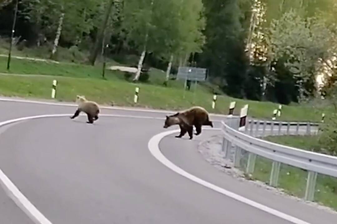 VIDEO: Cez cestu pred Tatranskou Lomnicou prechádzala medvedica s dvoma mláďatami