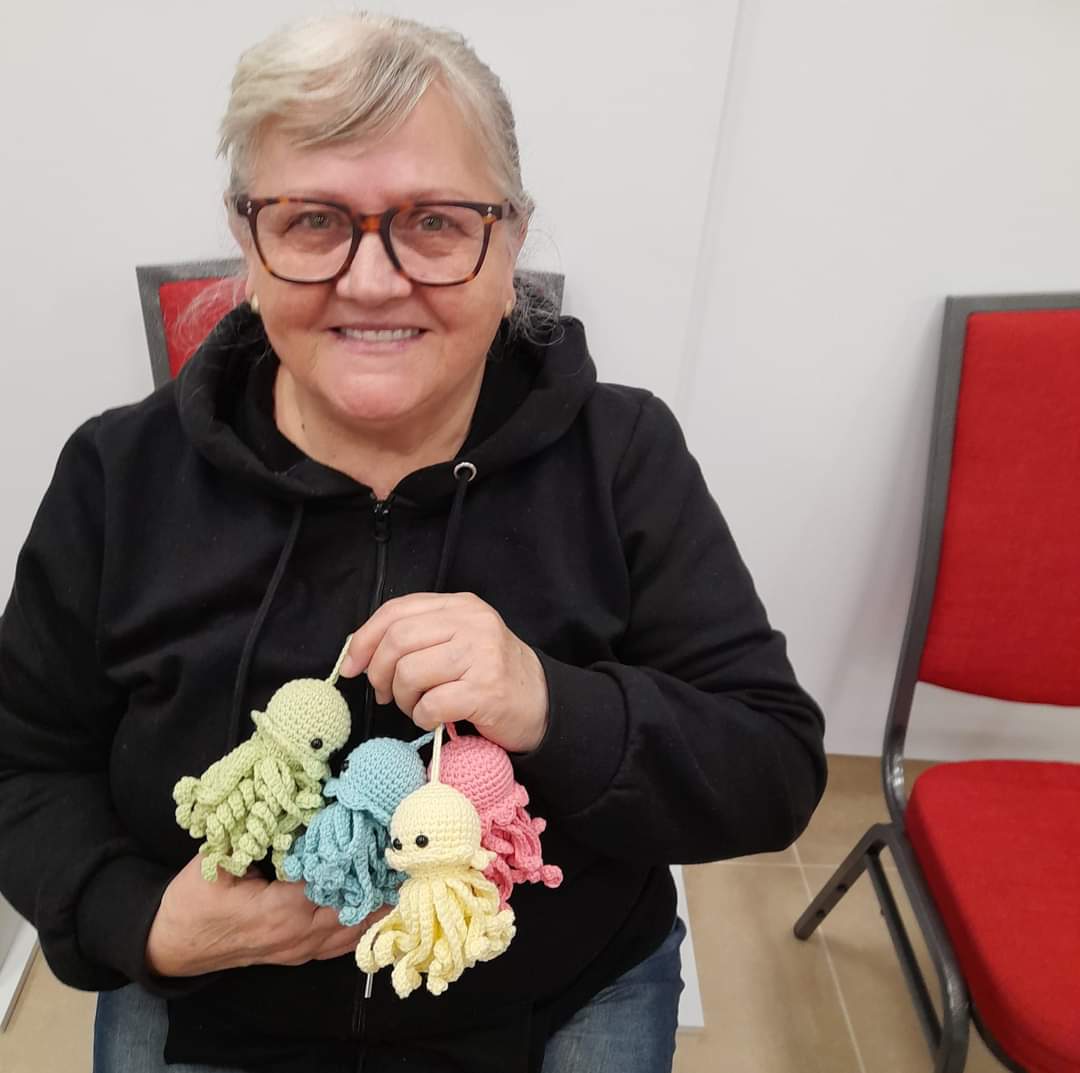 Pod umeleckým názvom Alexandra – háčkovanie Crochet môžete nájsť ručné práce Oliny Koubovej zo Svidníka. Hoci jej ide pletenie „od ruky“, tvoriť začala, keď sa dostala do dôchodku. „Vyše 40 rokov som robila v odeve, doma som sa chcela nejakým spôsobom z pracovných stresov upokojiť. Začala som pliesť a háčkovať, keď som mala 55 rokov.“
