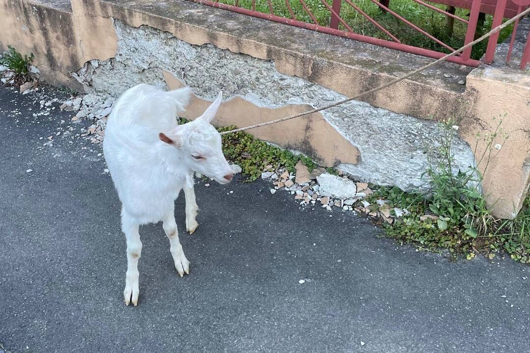 Mestská polícia voľne pohybujúcu bielu kozu odchytila a podľa fotografie na majiteľa čaká v uzatvorenej klietke. Majiteľ si ju môže vyzdvihnúť na oddelení Mestskej polície Stropkov.