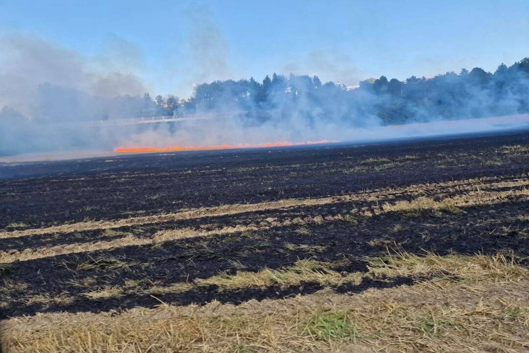 FOTO: V obci Petrovany došlo k požiaru suchého porastu. Zasahovali profesionálni a dobrovoľní hasiči