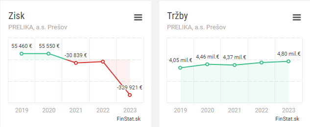 Zdroj: FinStat Tržby a zisky firmy Prelika (2019 - 2023)