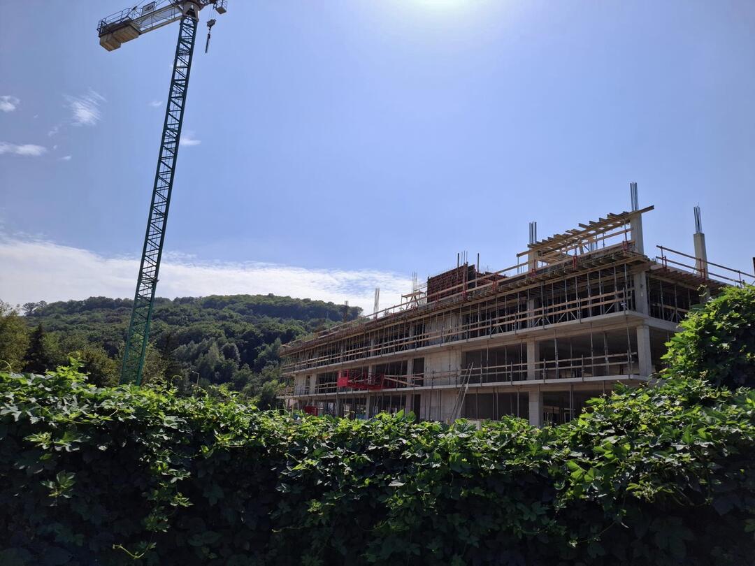 Aktuálne prebieha prvá etapa výstavby a na mieste už vidieť kostry bytových domov. Na stavenisku je čulý ruch, čo naznačuje, že projekt sa posúva vpred.