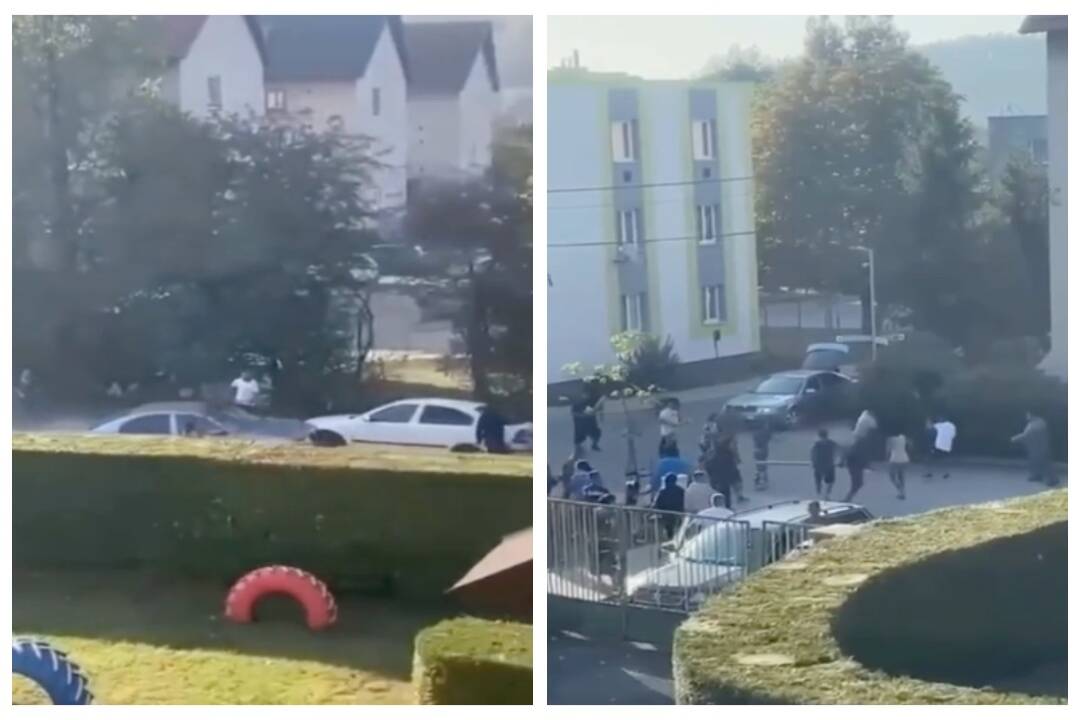 VIDEO: Pred škôlkou vo Veľkej Lomnici vyústil dedičský spor do bitky. Lietali kamene, sekery, za obeť padli aj autá