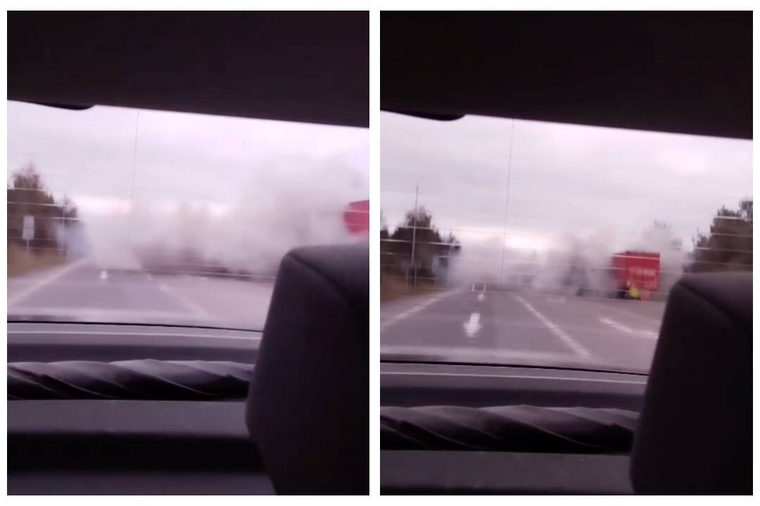 FOTO: V Chmeľove sa na ceste nachádzal kamión v kúdole dymu