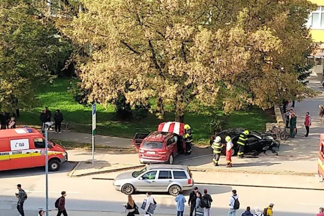 VIDEO: Na Kúpeľnej v Prešove sa zrazili dve osobné autá, k nehode došlo len pár metrov od vchodu základnej školy