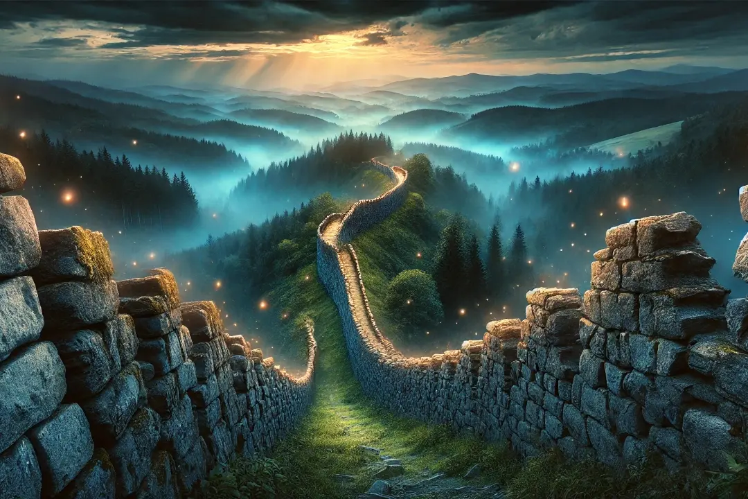 No legenda hovorí, že Obrovský strážca nikdy nezmizol. Vraj v tých najtichších nociach, keď mesiac osvieti val, môžete počuť jeho kroky a vidieť žiarivé svetlo, ako by si dával pozor na svoje Srdce hviezdy. Hovorí sa, že ak by niekto našiel cestu do srdca valu a narušil rovnováhu, zobudil by tieňochodov a temné dni by sa vrátili.