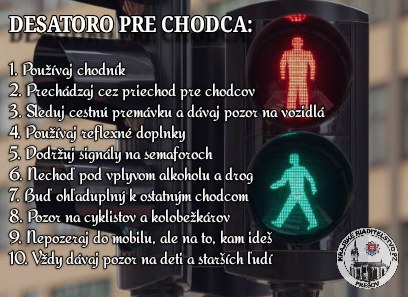 Polícia apeluje na vodičov aj chodcov, aby si uvedomili, že na cestách nie sú sami. Dodržiavanie pravidiel cestnej premávky je nevyhnutné na ochranu života a zdravia všetkých účastníkov premávky. V rámci výzvy zverejnili aj „Desatoro pre chodcov“, ktoré zahŕňa jednoduché pravidlá, ako napríklad používanie chodníka, reflexných prvkov či pozornosť pri prechádzaní cez cestu.