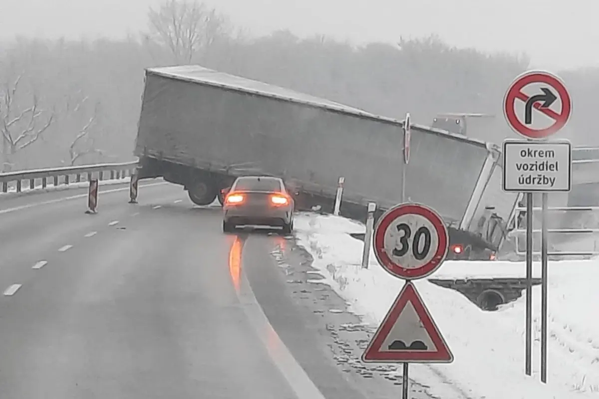 Kamión aktuálne vyťahujú naspäť na cestu, úsek je momentálne neprejazdný v oboch smeroch. Obchádzka vedie cez mesto. Informuje o tom Zelená vlna STVR na sociálnej sieti.