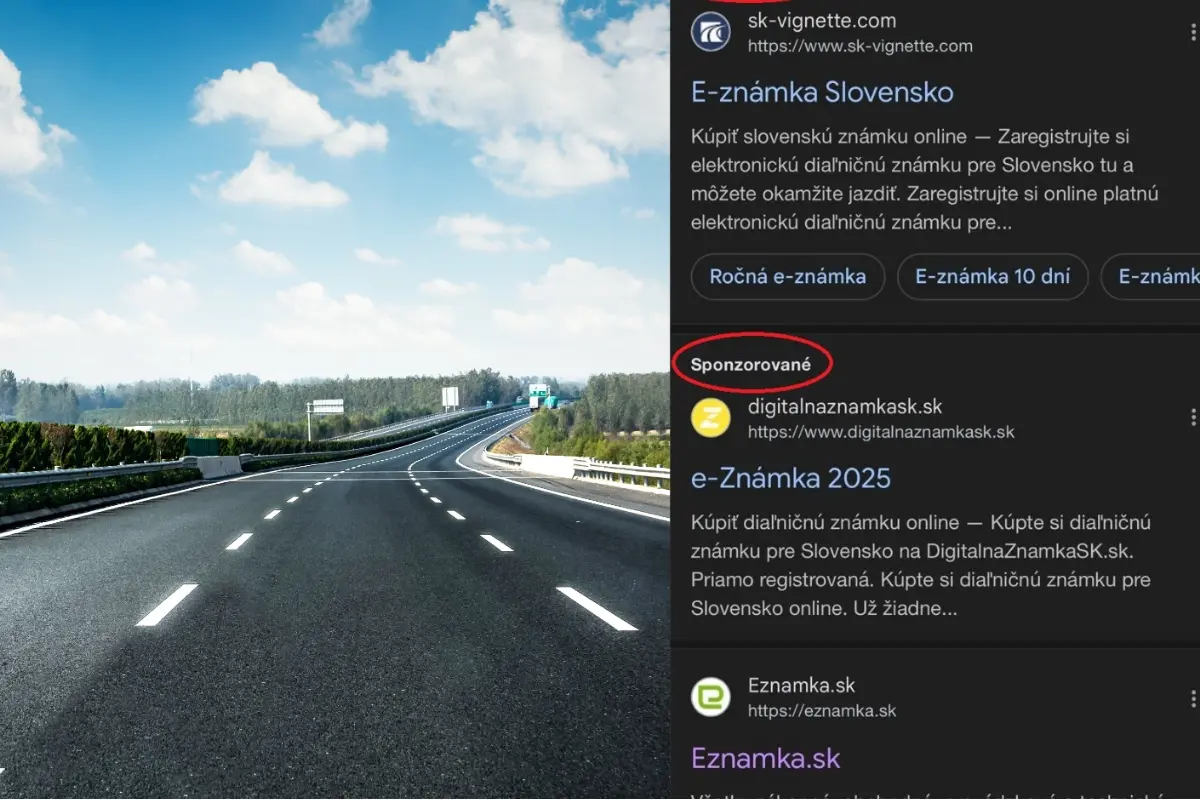 Najbezpečnejším riešením je oficiálna stránka E-znamka, kde 365-dňová známka stojí štandardných 90 eur. Mnohí vodiči sa však pri hľadaní predajcu na internete môžu nechtiac nachytať. Vyhľadávače ako Google často ponúkajú na popredných miestach platené reklamy priekupníckych portálov, ktoré si účtujú desiatky eur navyše.