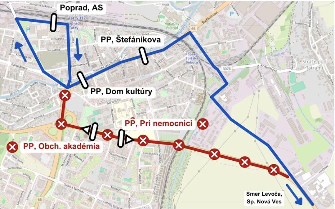 Regionálne autobusové linky v smere a zo smeru Hozelec a Gánovce prechádzajú z dôvodu uzávierky cez obchádzkovú trasu. Všetky linky regionálnej autobusovej dopravy smer a zo smeru Hozelec a Gánovce premávajú obchádzkovou trasou cez starú Levočskú cestu, nové prepojenie ciest pri mestskej časti Stráže a Štefánikovu ulicu.