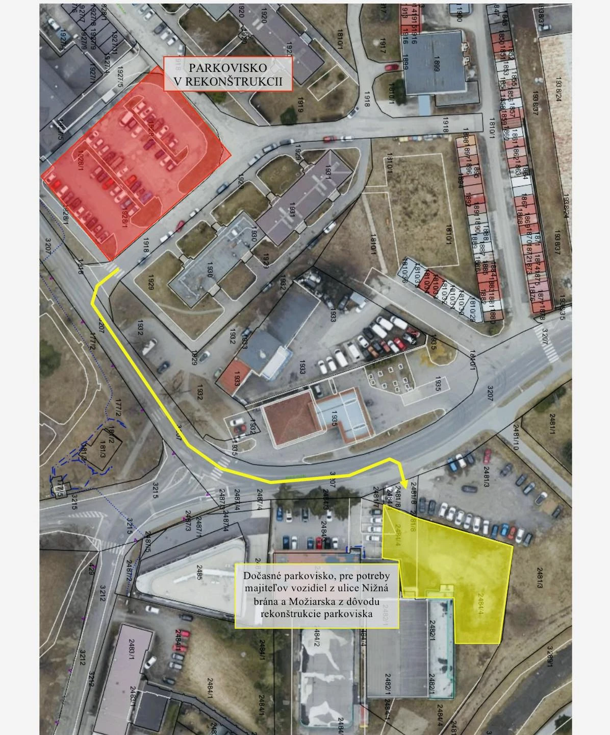 Prejazd na okolité ulice a prístup k bytovkám na uliciach Možiarska a Nižná brána zostane aj napriek rekonštrukcii zabezpečený. Náhradné parkovanie bude možné na parkovisku pri telocvični SOŠ Garbiarska (pri budove bývalého dopravného inšpektorátu).