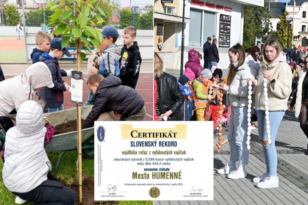 Takýto rekord sa len tak nevidí – v Humennom len pred pár týždňami vytvorili najdlhšiu reťaz z vyfúknutých vajíčok na Slovensku. A nešlo len o dekoráciu. Za každých 100 vajíčok mesto prisľúbilo výsadbu jedného stromu. Výsledok? Takmer polkilometrová reťaz a desiatky nových stromčekov.