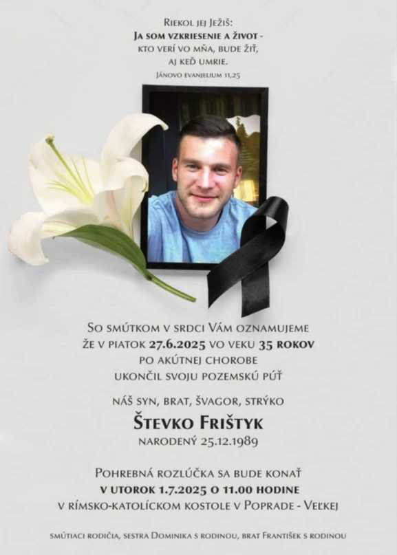 Fanúšikovská komunita prešovského športu smúti. Náhle zomrel Števo, oddaný člen skupiny Tatran Ultras 1898, ktorý ešte nedávno stál v prvých radoch tribún a oslavoval úspechy svojho klubu. Mal len 35 rokov.