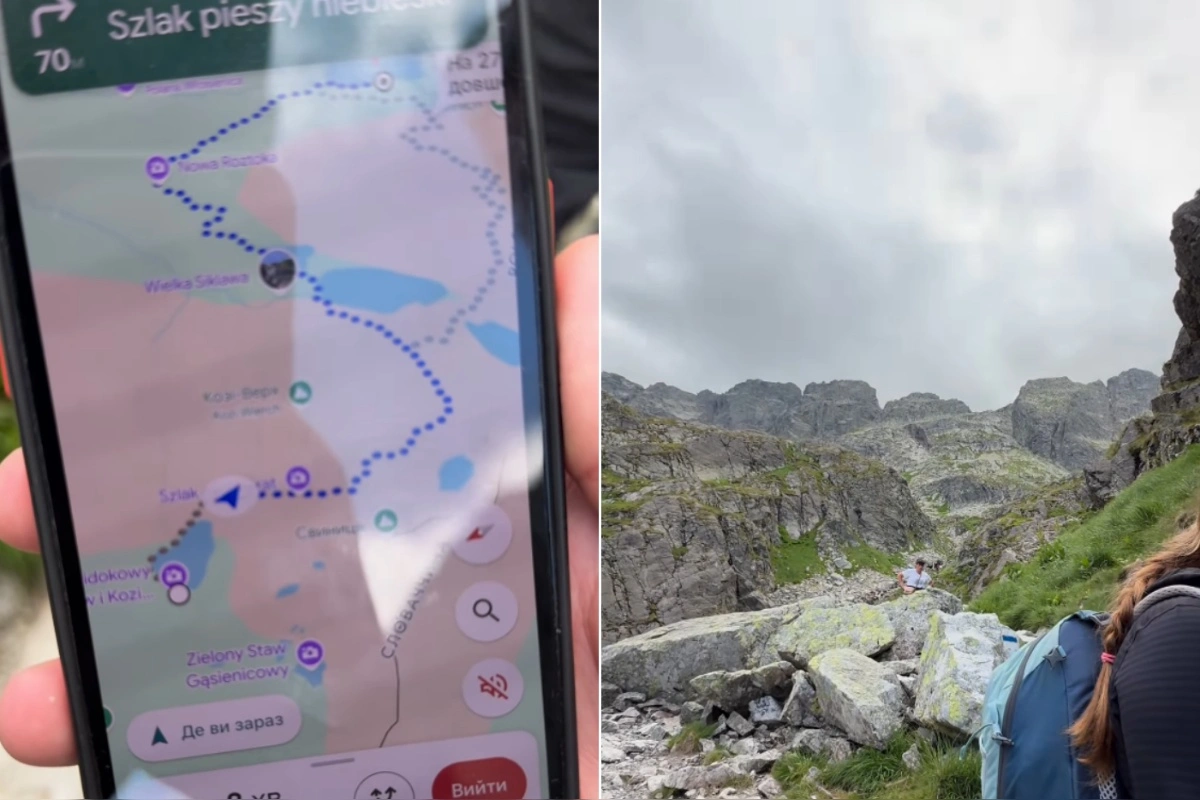 Muž mu ukázal telefón s navigáciou Google Maps, ktorá ich viedla po extrémne náročnej trase: z Kuźníc cez Bočáň, Gąsienicovu poľanu, Zadný Granát, Kulczyńského žľab, Dolina Piatich Spišských plies, Roztockú štrbinu (alebo Świstówka Roztocká) — až napokon k Morskému oku