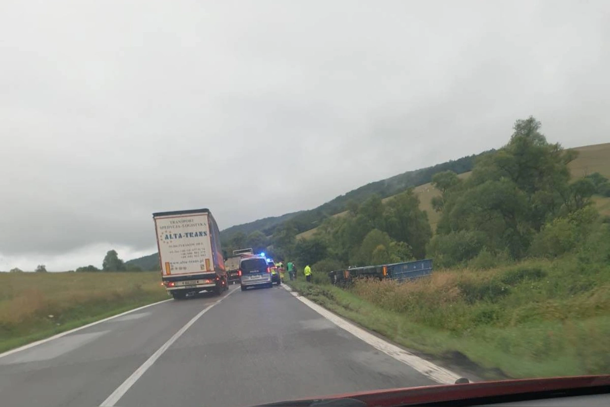 Za obcou Okrúhle havaroval kamión, skončil mimo cestu, v úseku prechádzate striedavo
