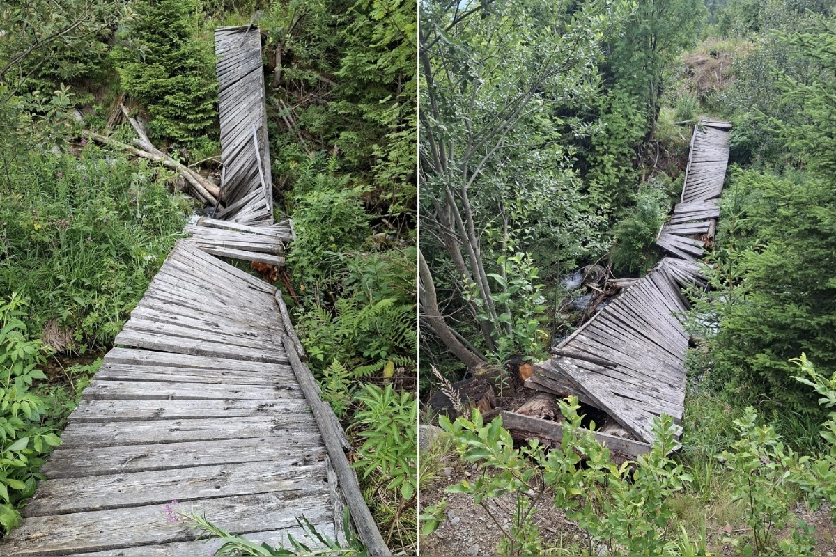 Zrútený mostík, žiadne upozornenia a nulová reakcia kompetentných. Aj takto vyzerá realita na frekventovanej turistickej trase medzi Podbanským a ústím Bystrej doliny v Tatrách.