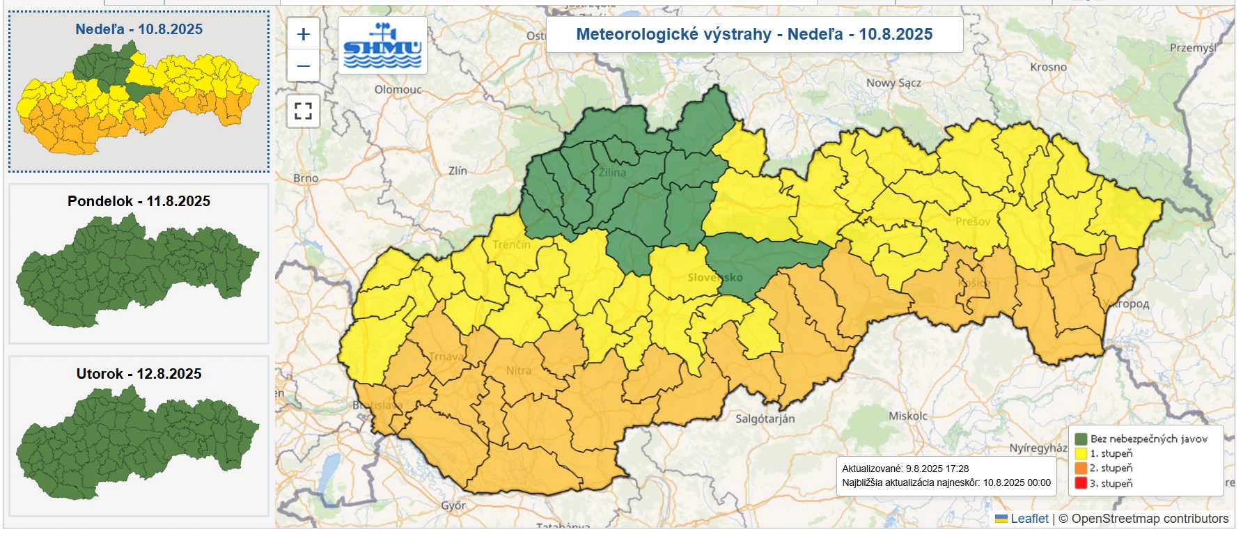 Popoludní sa môžu teploty v Prešovskom kraji vyšplhať až na 33 stupňov Celzia, o čosi miernejšie teploty budú v okresoch Levoča, Poprad a Stará Ľubovňa, kde výstrahy nie sú.