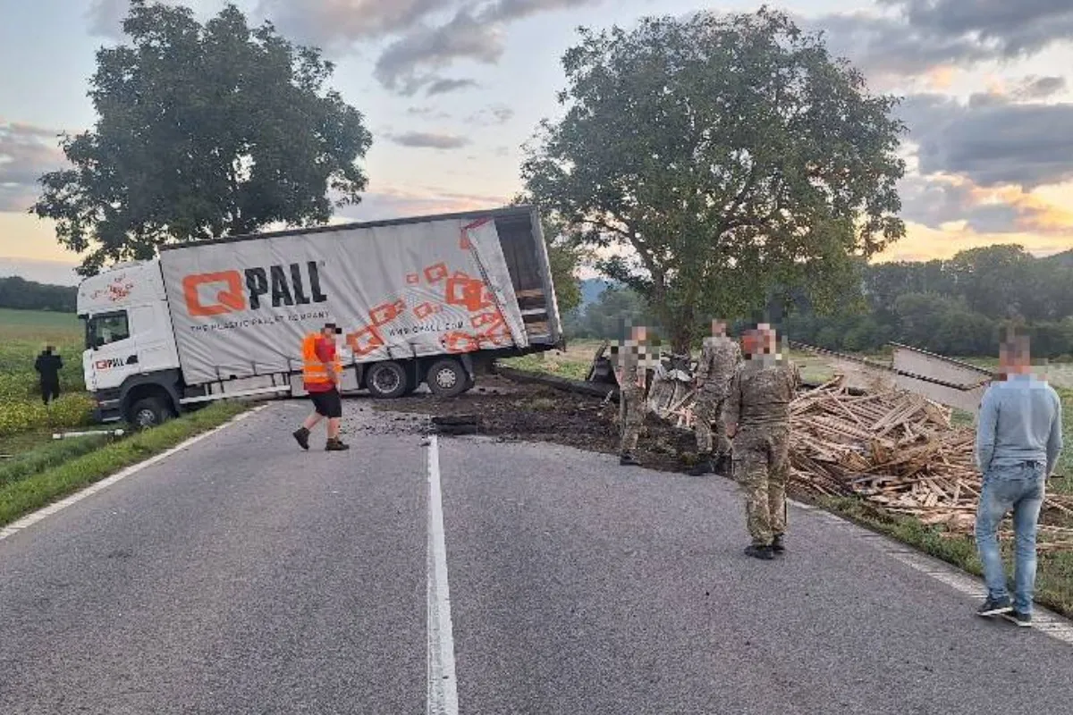 Za Hlinným sa skrížil kamión plný paliet, cesta je zablokovaná, využite obchádzku