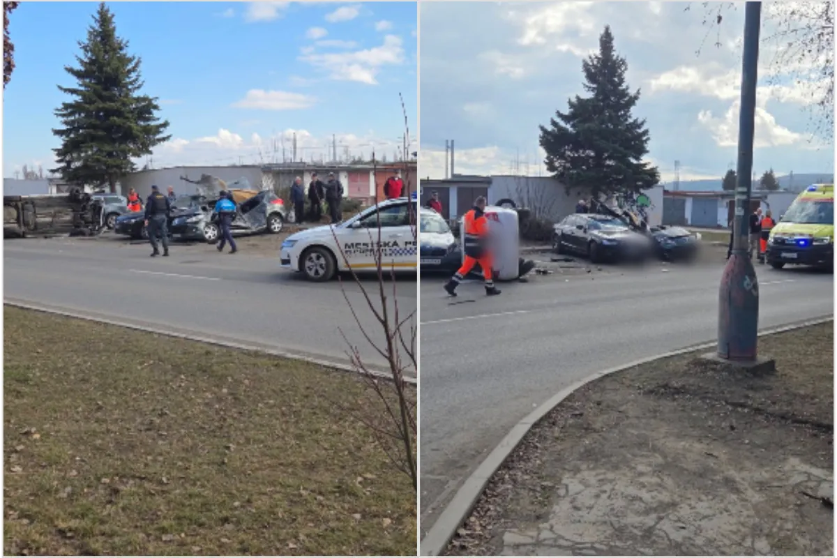 Hrozivo vyzerajúca nehoda v Poprade. Vodič narazil do zaparkovaných áut, vozidlo ostalo prevrátené