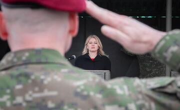 Prezidentka Zuzana Čaputová počas návštevy Sokolovských kasární poďakovala práporu za obetavú službu vlasti