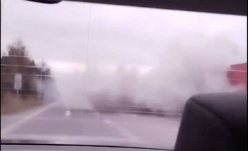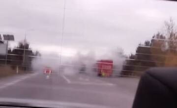 V Chmeľove sa na ceste nachádzal kamión v kúdole dymu